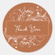Siegel deine Dankkarten mit diesem eleganten Rust Blüh Hochzeit danke Ihnen Aufkleber. Die Stickergestaltung ist elegant, geblüht mit farblich abgestimmtem Hintergrund. Zusätzliche Hochzeitsware, Hochzeitsartikel und Gastgeschenke sind ebenfalls mit diesem Design erhältlich.
