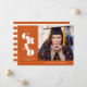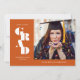 Feiern Sie die große Errungenschaft Ihres Absolventen mit dieser verbrannten orangen und weißen Ankündigung des modernen Abschlusses. Es enthält das Wort grad geschrieben in einer fetten Serife auf dem mit Platz für ein Foto des Absolventen auf der rechten Seite.