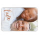 Ein individueller Hochzeitsmagnet-Foto-Gedächtnis mit angesagten und einzigartigen Imitaten Kupferfolie "Liebe" in einem eleganten Kalligrafieschrift und ihrer Hochzeit oder Verlobung oder einem anderen besonderen Datum in der Ecke mit einem singulären romantischen industriellen Look.