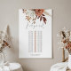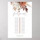 Rust Terracotta Florals Modernes Script Single Table Wedding Seating Chart Finden Sie Ihren Sitz ist in einem stilvollen Set-Skript und die Erholung des Textes können Sie leicht personalisieren. Ein Blumenstrauß aus Terrakotta und cremefarbenen Herbstfloralen steht ganz oben.