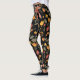 Rust Gold & Green Blume & Birnen auf schwarzen Leg Leggings