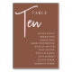 Einfache und schicke Tischnummer-Karten im Erdton Rost braun und Weiß machen eine elegante Aussage bei Ihrer Hochzeit oder Veranstaltung. Das Design enthält "Table [number]" in einem spannenden Mix aus klassischer Serif und handgeschriebenem Skriptsatz, darunter einzelne Gastnamen. Design wiederholt sich auf beiden Seiten. Einzelne nummerierte Karten werden separat verkauft; bestellen Sie jede Tischnummer einzeln aus unserer Sammlung.