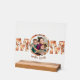 Rust Rose Custom Photo Mother's Day Gift Acrylic Sign. Surprise a special mother figure with this beautifully warm and modern Mother's Day acrylic sign. The transparent design rests on a natural wood base and features lovely rust rose floral patterns surrounding a custom family photo placeholder. This personalized keepsake serves as heartfelt desk or shelf decor that is perfect for moms and grandmothers alike. With your own special photo and a personalized message this will be a unique one of a kind gift.