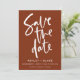 Rust and White Modern Script Einfache handgeschriebene Kalligrafie Hochzeit Speichern Sie die Datumskarten Mit Ihrem Text anpassen, um es einzigartig zu machen