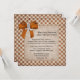 Fun Western Thema Hochzeitseinladung in einem gestörten Rost und einem bräunlichen karierten Muster, mit einem bräunlich antiken Papiertext-Bereich in der Mitte. Die Grafik eines hübsch rostigen Orangensatin, der in der oberen links Ecke des Bogens auftritt, hat eine silberfarbene kleine Cowboy-Stiefeldekoration. Text in schwarz ist bereit, für Ihren speziellen Tag personalisieren. Große Hochzeitseinladung für lässige zu formalen Angelegenheiten.