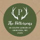 Maßgeschneiderte Rundaufkleber mit Rücksendeadresse personalisiert mit Ihrer Familienmonogramm und Adresse. Dieses moderne rustikale Design zeichnet sich durch ein Monogramm aus, das mit Hirschantlern in den Farben Grün und Weiß des Jägers anfängt. Verwenden Sie die Designtools, um die Hintergrundfarbe und die Schriftart zu ändern, um Ihr eigenes, einzigartiges Design weiter anzupassen. Ideal für die Behandlung von Urlaubskarten, Hochzeitsartikeln und vieles mehr.