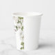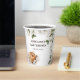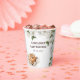Das "Rustic Baby is Brewing Coffee Baby Shower Paper Cups" verfügt über eine Kaffeetasse-Abbildung unten links und zarte weiße Blume an der Spitze und schafft so eine charmante und rustikale Atmosphäre. Das Design verbindet warme Kaffeeelemente mit sanften Blumenakzenten und macht sie perfekt für eine gemütliche und einladende Babydusche.
