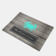 Set von Ihrer Tür oder Terrasse mit diesem Rustic Beach House Aquamarin Blue Crab Familie Monogram Doormat. Es ist mit grauem Imitat mit Holzfußboden ausgelegt und bietet ein Wasserthema mit einer großen aquamarinen blauen Krabbe. Der Nachname Ihrer Familie wird in angesagten Handschriften auf der Mitte des dunkelgrauen Rechtecks auf der unteren Vorderseite angepasst. Klicken Sie auf Vorlagenoption personalisieren und geben Sie den Namen ein.