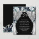 Billige elegante Marinehocheinladungen mit einem angesagten, schwarzen Chalkboard-Hintergrund, der in jede Farbe geändert werden kann, rustikalen bohblauen Aquarell-Blume, Streichellichter und einer modernen Hochzeitsvorlage.