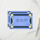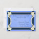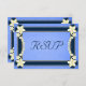 Rustikale blaue Blüte © Sunny Mars Designs - Individuell gestaltbare, Vintage, rostige, elegante Hochzeitskarten mit dunkelblauen Bandstreifen, moderne hübsche Blume auf dem Hintergrund alter Pergamentpapier.