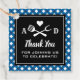 Wir danken Ihnen für Ihre Hochzeitsmarken mit einem Schwarz-Weiß-Grilldesign mit GRILLEN Gabel und Spatula Grill-Utensilien und Herzakzent. Personalisieren Sie die individuellen Monogramm-Initialen und "Danke, dass Sie sich uns angeschlossen haben, um zu feiern!" Nachricht. Enthält eine Marine, blau und weiß Gingham Tischdecken gemusterten Hintergrund. Ideal für eine lässige Hochzeitsfeier im Hinterhof.