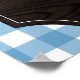 Rustikales, blaues Gingham-Bar mit Holzkorn, Sonnenblumen und Ihrem Monogramm-Dachboden überquerten Grillen-Utensilien.