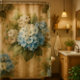 Accent the decor of your bathroom with a elegant rustic style shower curtain. This botanical curtain features a watercolor illustration of blue and white hydrangeas, with green leaves on a faux burlap background. The soft color palette and charming design will add a touch of rustic elegance to any bathroom, transforming it into a peaceful and inviting space.
