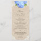 Rustikales Blue Hydrangea Lace & Burlap Wedding Menü.