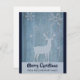 Eine Weihnachtskarte, die mit Ihrem Namen und Ihrer Botschaft auf der Rückseite personalisiert ist. Die Einrichtung besteht aus einem blauen Imitat mit Holzfußboden. Oben platziert ist eine Silhouette Rentiere mit großen Geweih- und hübschen Schneeflocken und Sternen, die um ihn herabfallen.