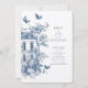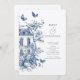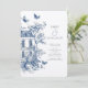 Rustic Blue Toile De Jouy QR Code Wedding Einladung