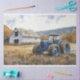 Rustic Blue Tractor White Barde Watercolor Seidenpapier