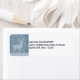 Rücksendeadressen-Aufkleber mit blauem Imitat und Holzboden. Oben platziert ist eine Silhouette eines Rentiers mit großen Geweihen.