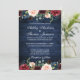 Rustic Blue Wood Wedding Floral Burgundy Blue Einladung