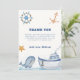 Babydusche zum Thema, Ahoy! Es ist eine Baby-Dusche, feiern bevorstehende Babydusche mit unserem marineblauen niedlichen rustikalen modernen Wassersportschiff, Anker, Seesterne, Wal, Rad in beige Farbe, Rückseite mit Streifen Muster. Sie können Ihren eigenen Text und Ihre eigene Farbe durch "Personalisieren Sie dieses Design" personalisieren.