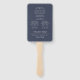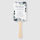 Rustikale Blumen Hochzeitsfans mit einem schicken, weißen Hintergrund auf der Vorderseite, der in jede Farbe geändert werden kann, einem marineblau blauen Aquarellbogen und einer modernen Hochzeitsordnung, die leicht zu personalisieren ist.