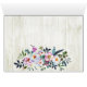 Rustikaler böhmischer Blumenkranz und langgezogener Kuhschädel über weißgewaschenen Holzplanken Hintergrund danke Ihnen Karte.