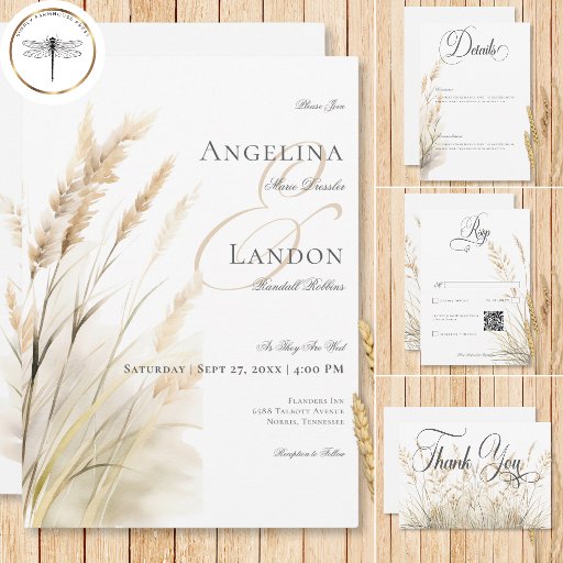 Rustic Boho Dried Tan Grass Wedding Save The Date