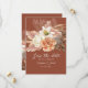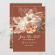 Mit dieser rustikalen, blumengeschmückten Terrakotta-Save the Date-Karte können Sie Ihren besonderen Tag für eine Hochzeit im Herbst ausklingen lassen. Mit einem warmen, erdigen Terrakotta-Hintergrund mit eleganten Herbstblüten und üppiger Vegetation schafft es ein gemütliches, romantisches Ambiente. Passen Sie Ihre Hochzeitsdetails für eine persönliche Touch an.