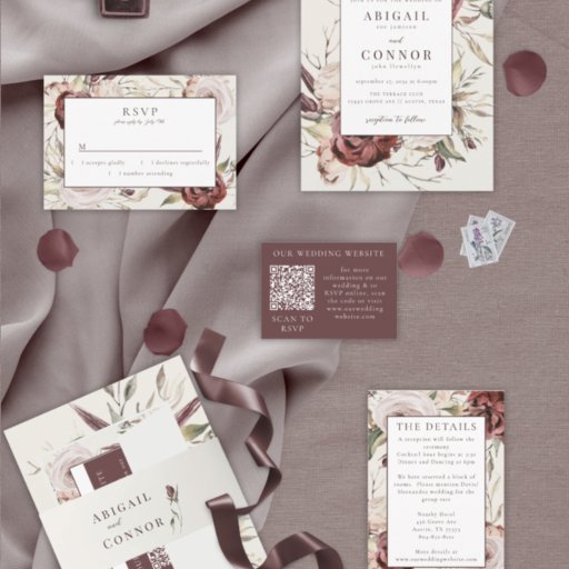 Rustic Boho Marsala Cream Floral Menükarte