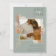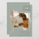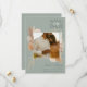 Mit diesem rustikalen Boho Sage Foto Hochzeit Speichern Sie die Datumskarte. Diese Karte ist perfekt für Paare, die eine Hochzeit im Herbst planen. Sie bietet eine weiche, schlaue grüne Kulisse und einen atemberaubenden Boho-Blumenrahmen, der Ihr Lieblings-Verlobung-Foto wunderschön umrahmt. Mit schlichten, modernen Schriftart und erdigen Farbtönen verbindet dies Save the Date Eleganz mit dem rustikalen Charme des Herbstes. Es Set den perfekten Ton für Ihre kommende Hochzeit und lädt die Gäste ein, ihre Kalender in einer denkwürdigen und stilvollen Weise zu markieren.