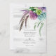 Trendy Pflanze Hochzeit Foto Einladung mit böhmischen Federn und elegante Kalligraphie, die auf Ihre Veranstaltung Besonderheiten angepasst. Ideal für jede Art von Thema oder Gartenhochzeit. Der QR-Code auf der Rückseite führt zu Ihrer Hochzeitsstelle, wo die Menschen mehr und uAwg lernen können.