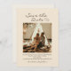 "Save the Date" Karten mit Ihrem Foto auf einem braunen Hintergrund, Ihr Text in einem stilvollen, modernen handgeschriebenen Schriftart und mit zwei niedlichen Herzen. Personalisieren Sie mit einem Verlobung-Foto, Ihren Namen, Hochzeitsdatum und Ort, und Ihre Hochzeitswebsite.