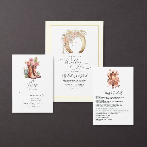 Genießen Sie den Hochzeitsempfang zum Thema Western mit diesem hübsch gestalteten Menü, das von einem rustikalen Cowboy mit zarten Blumenakzenten geschmückt ist. Ideal für Hochzeiten auf der Ranch, im Land oder in der Rustikale, bietet dieses Menü elegant Ihre sorgfältig gepflegten Vorspeisen, Vorspeisen und Seiten in einem stilvollen Ambiente. Fügen Sie Ihrem besonderen Tag eine Touch von Western Charme und Eleganz hinzu, mit diesem einzigartigen Design.