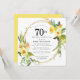 Die wunderschöne Blumenstruktur im Frühling mit ihren gelben und weißen Daffodien schmückt einen rustikalen Rahmen. Die üppige Vegetation und die üppigen Stiele verleihen dem Hotel ein modernes Boho-Ambiente. Die Rückseite des 70. Geburtstags Einladung ist hell sonnig gelb. Perfekte Wahl für eine Geburtstagsfeier im Frühjahr.