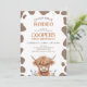 Rustic Brown Highland Cow First Rodeo Birthday Einladung