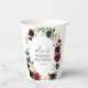 Crafted with a keen eye for detail, this paper cup is an emblem of sophistication and style. It features a captivating boho floral wreath that gracefully encircles the cup, a blend of burgundy, blue, and blush flowers, symbolizing the depth, tranquility, and tenderness of love. This stunning floral arrangement not only adds a vibrant splash of color but also reflects the beauty of a garden in full bloom, perfect for a bride-to-be who adores nature's splendor.