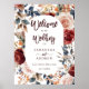 Rustic Burgundy Fall Floral Boho Hochzeit Willkomm Poster