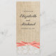 Rustic Burlap Lace Coral Ribbon Wedding Programm