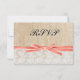 Rustic Burlap Lace Coral Ribbon Wedding RSVP Karte