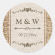 Rustic Burlap Lace Wedding Monogram Runder Aufkleber