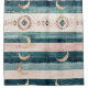 Rustic celestial stripe pattern shower curtain featuring moon phases, sun symbols, and tribal-inspired details in earthy teal and clay tones. A calm, grounding design ideal for boho lovers, spiritual creatives, and nature-inspired interiors. A thoughtful gift for moon watchers, astrology fans, and earthy souls.