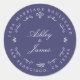 Chic, modern und einfach Hochzeitsklassiker, runder Aufkleber mit dem Text der Zukunft Mr. und Mrs. in weißer, eleganter Schrift auf einem marineblau Hintergrund mit Lorbeeren und anderen rustikalen dekorativen Details. Fügen Sie einfach Ihren Namen und Ihre Adresse hinzu. Exklusiv für Sie entworfen von Happy Dolphin Studio. Wenn Sie Hilfe oder passende Produkte benötigen, kontaktieren Sie uns bitte unter happydolphinstudio@outlook.com. Wir helfen Ihnen gerne, Ihre Hochzeit zum schönsten Tag zu machen!