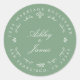 Schick, modern und einfach Rücksendeadresse klassische Rundaufkleber mit dem Text der Zukunft Mr. und Mrs. in weißer eleganter Schrift auf einem mineralgrünen Hintergrund mit Lorbeeren und anderen rustikalen dekorativen Details. Fügen Sie einfach Ihren Namen und Ihre Adresse hinzu. Exklusiv für Sie entworfen von Happy Dolphin Studio. Wenn Sie Hilfe oder passende Produkte benötigen, kontaktieren Sie uns bitte unter happydolphinstudio@outlook.com. Wir helfen Ihnen gerne, Ihre Hochzeit zum schönsten Tag zu machen!