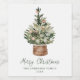 Add a refined holiday touch to your wine bottles with this elegant Christmas wine label featuring a hand-painted evergreen tree adorned with neutral blush, champagne, green, and golden caramel-toned ornaments accented by soft white lights. The tree rests in a woven wicker basket, creating a warm, cozy farmhouse look. “Merry Christmas” appears below in green handwritten script, with your family name and year displayed underneath. Set against a white background, this timeless design is perfect for gifting wine, decorating bottles for Christmas dinners, or adding a festive accent to holiday parties and celebrations.