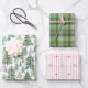Rustic Christmas Trees Plaid and Red Stripe Bows Geschenkpapier Set