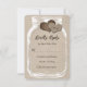 Rustikale Hochzeitskarte RSVP mit einem Maurerjar mit zwei Burlherzen mit Initialen auf einem Rutschhintergrund. Dieses romantische UAWG können Sie ganz einfach online personalisieren. Matching Artikel verfügbar, um diese rustikale Hochzeitskarte zu ergänzen.