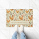 A cute rustic country farm doormat with painted hens and flowers and your family name, with an earthy vibe.