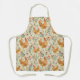 A cute rustic country farm style apron, with painted chickens and flowers pattern, in cream and green.