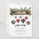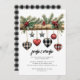 Rustic Country Christmas Party Invitation featuring hanging country hearts and stars on a branch adorned with pine and red berries. Perfect for your family or corporate Christmas Party.