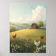 Bring a touch of quiet country life into your home with this charming summer landscape artwork. The scene features a cozy wooden cabin nestled in rolling golden hills, surrounded by lush forests and bright wildflowers swaying in the breeze. Chickens roam freely in the sunlit meadow, adding warmth and life to the peaceful setting.
